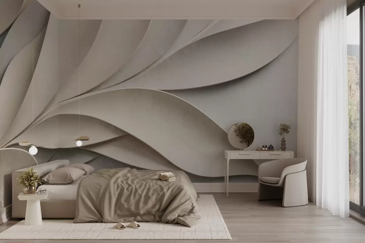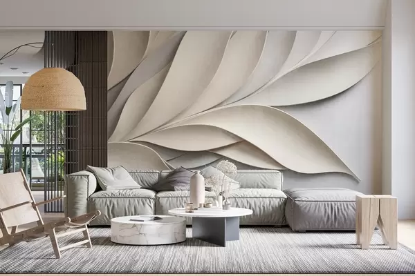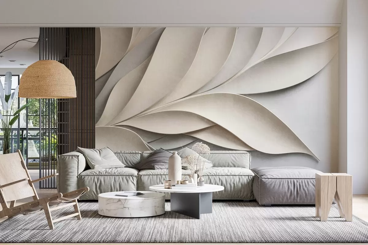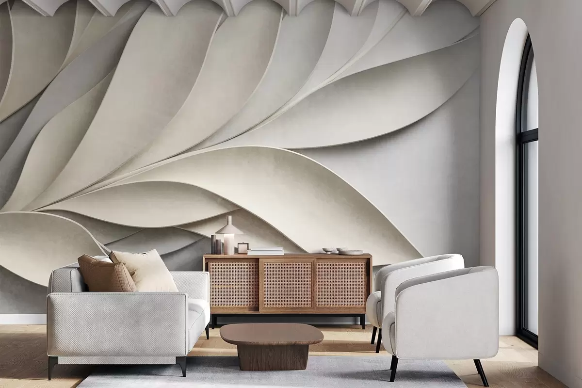 Fotomurales Hojas abstractas en beige y gris, arte moderno con textura. Nr. w09769