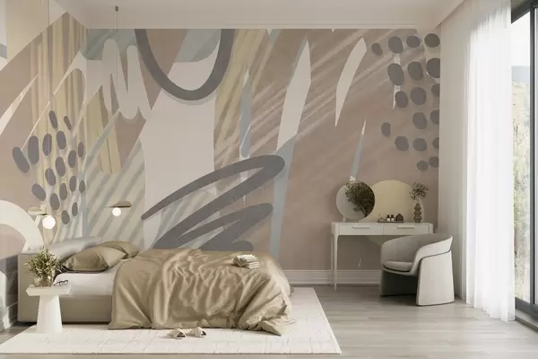 Fotomurales Estampado abstracto con texturas, formas orgánicas, garabatos y puntos en tonos pastel apagados Nr. w09774