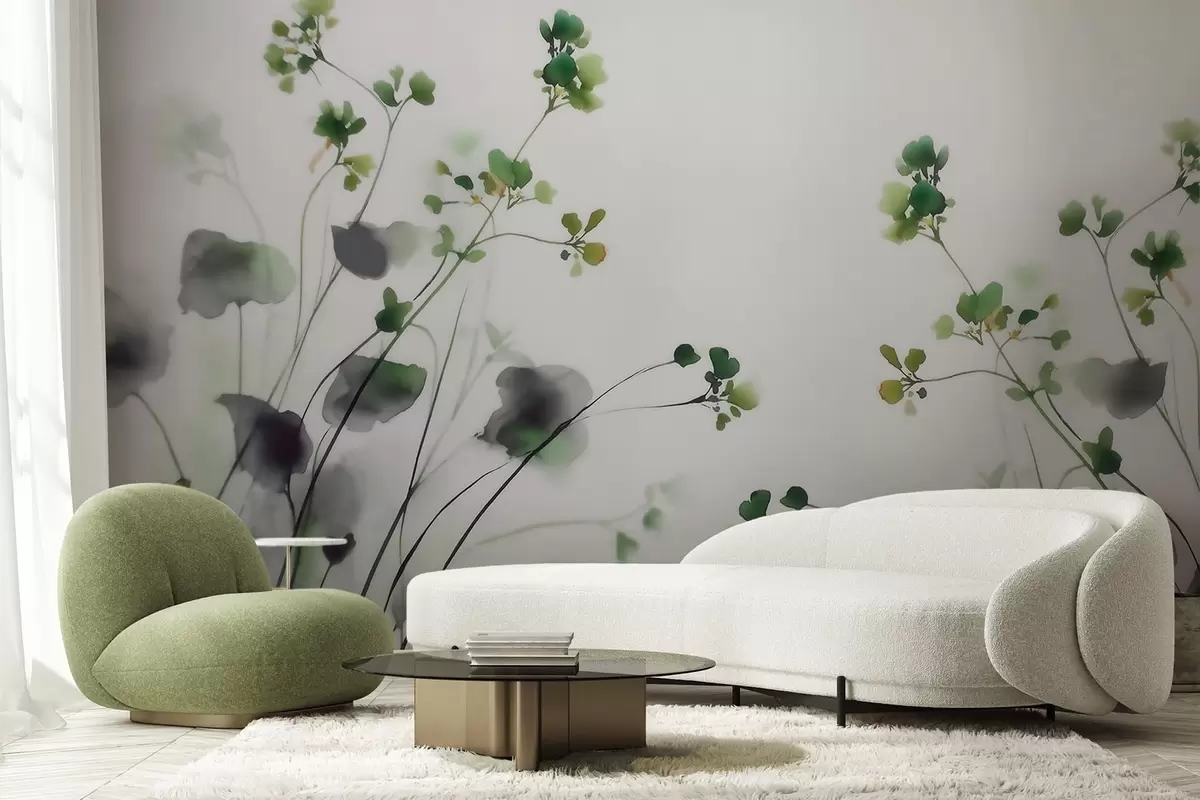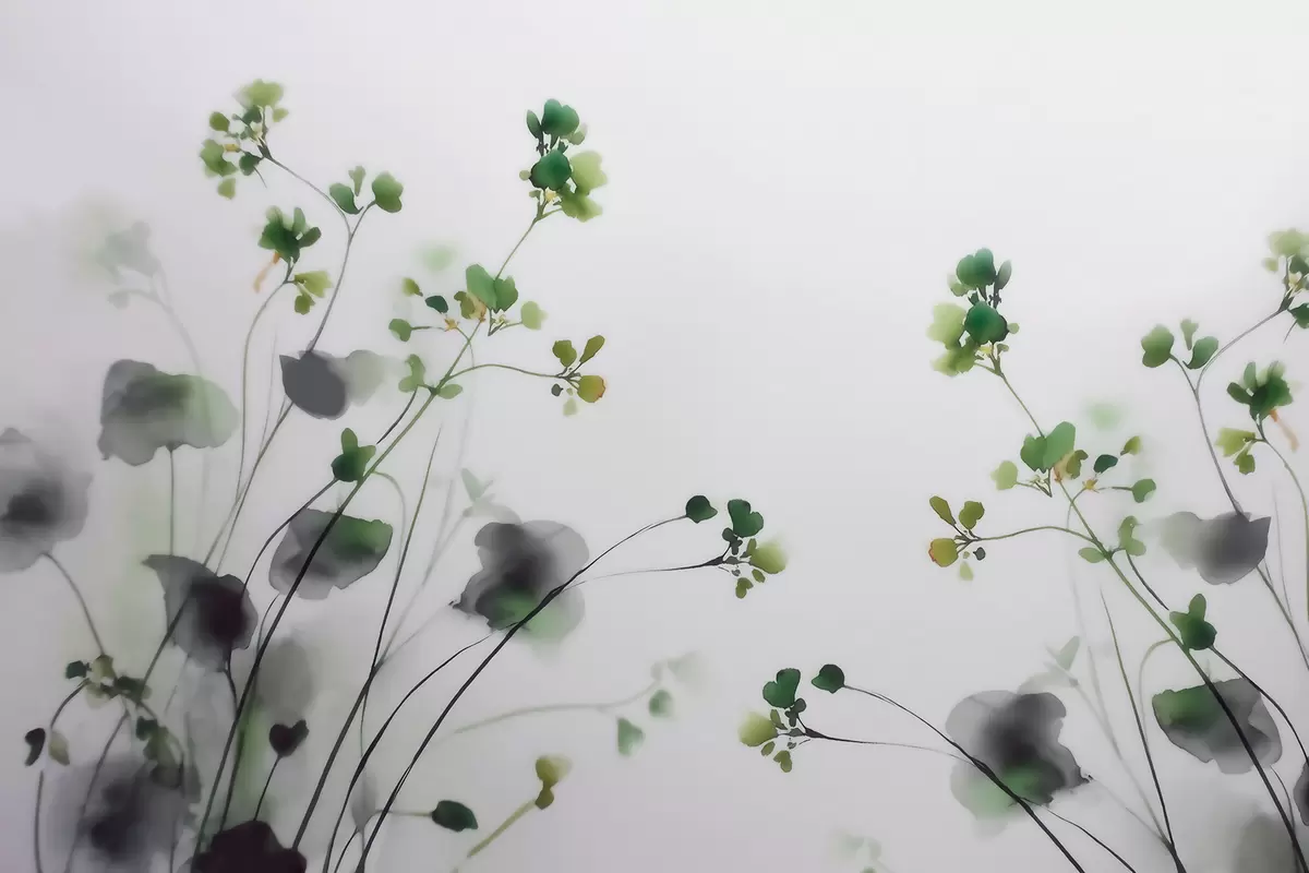 Fotomurales Delicadas flores silvestres y hierba en estilo acuarela Nr. w09796