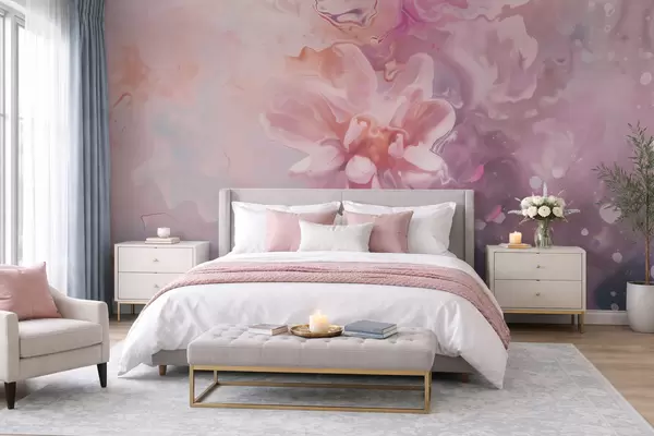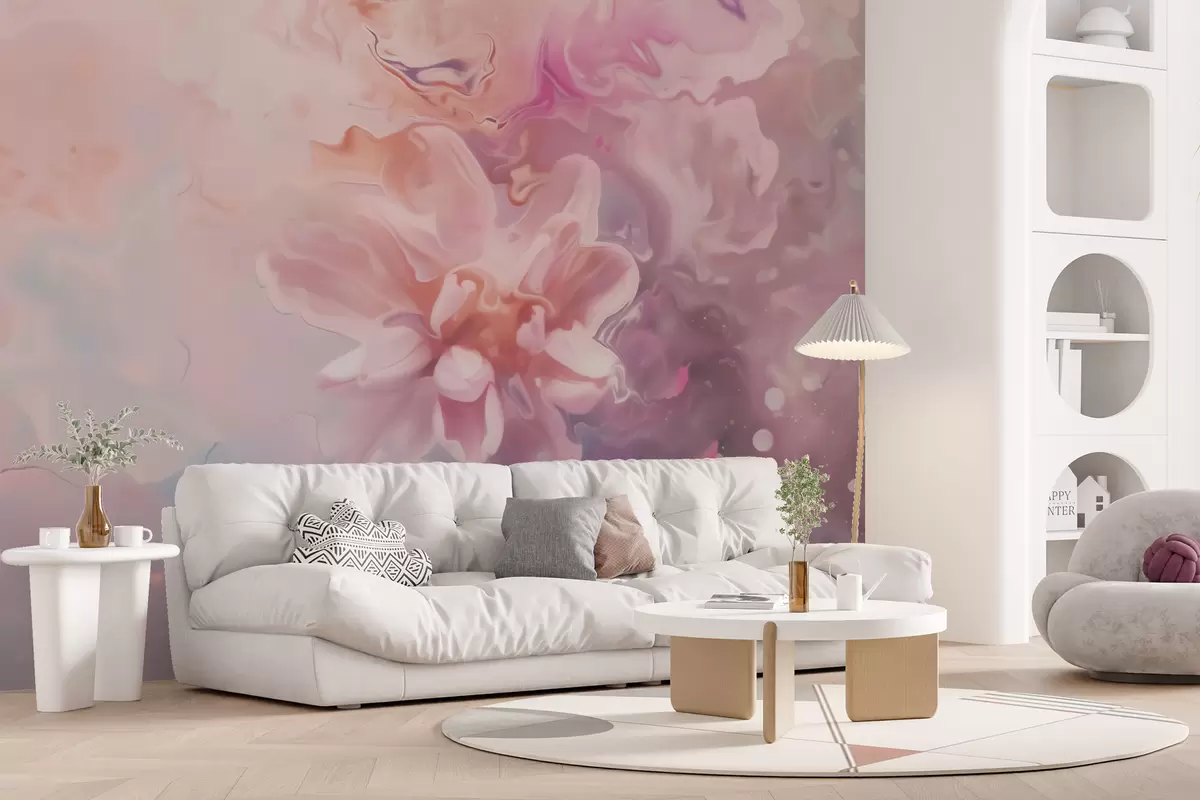 Fotomurales Una composición abstracta con una flor y suaves tonos rosados en estilo acuarela Nr. w09859
