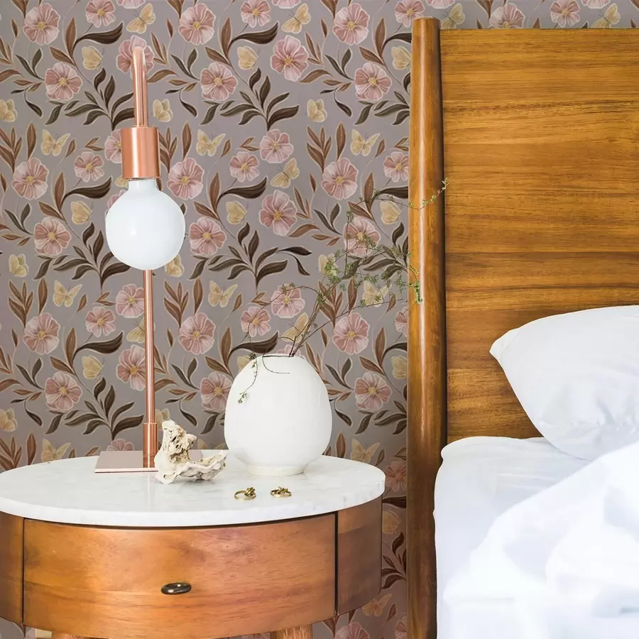 Estilo Morris: ramas beige sobre fondo gris verdoso