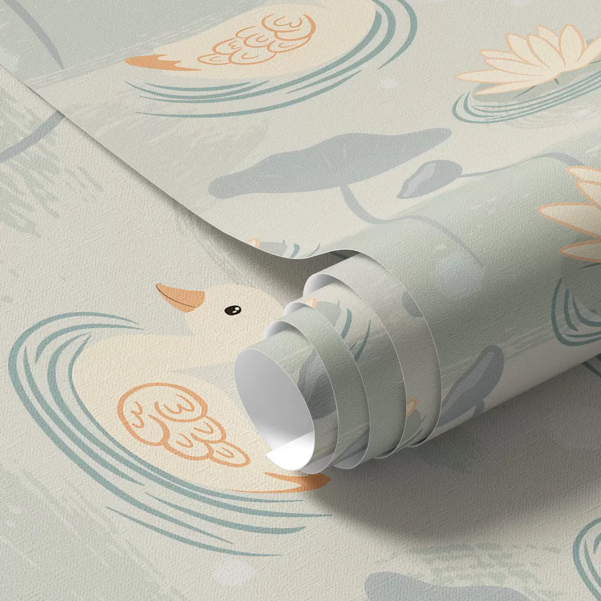 Papel pintado Patitos en un estanque con lotos Nr. a00079
