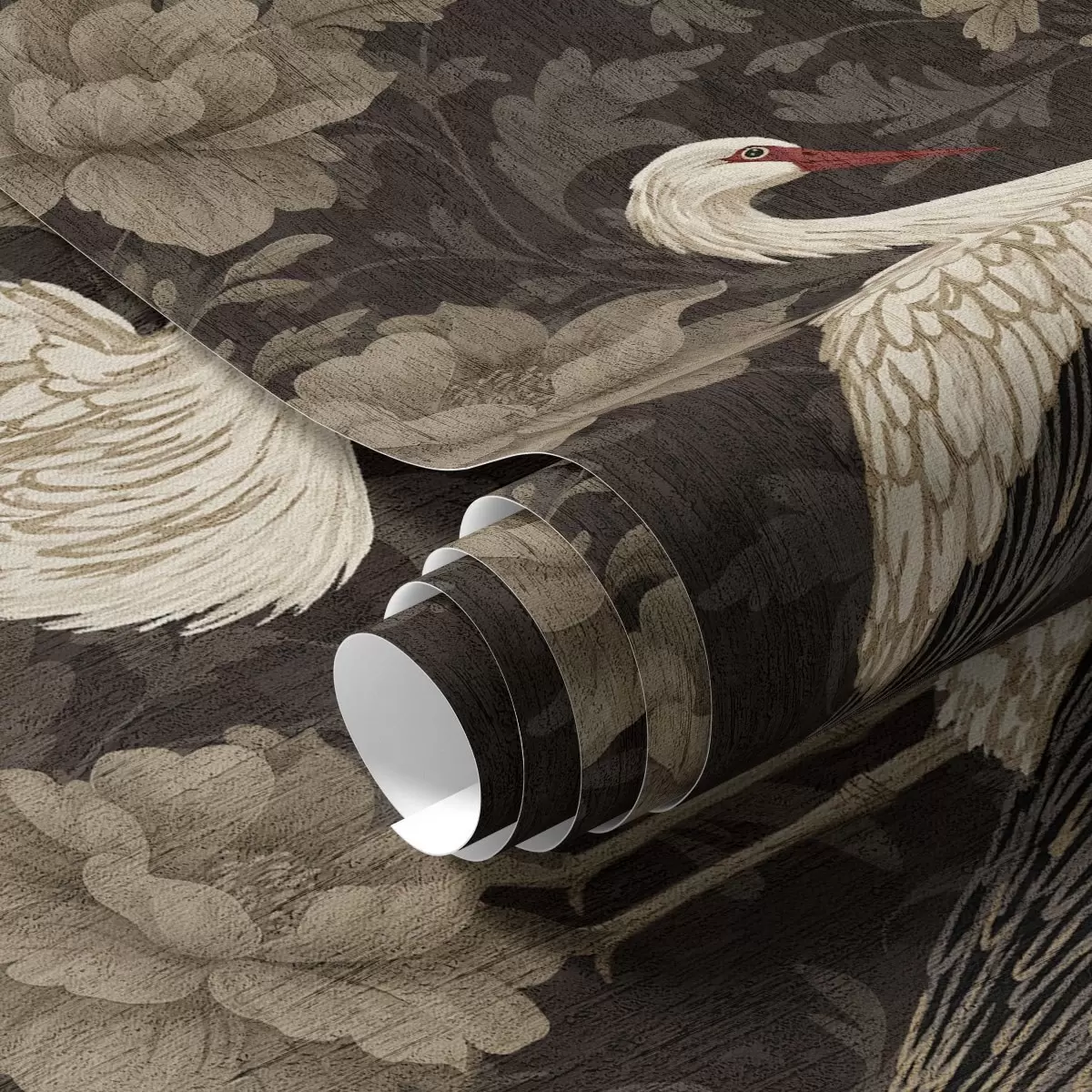 Papel pintado Grullas entre grandes flores en una clásica paleta pastel Nr. a00108