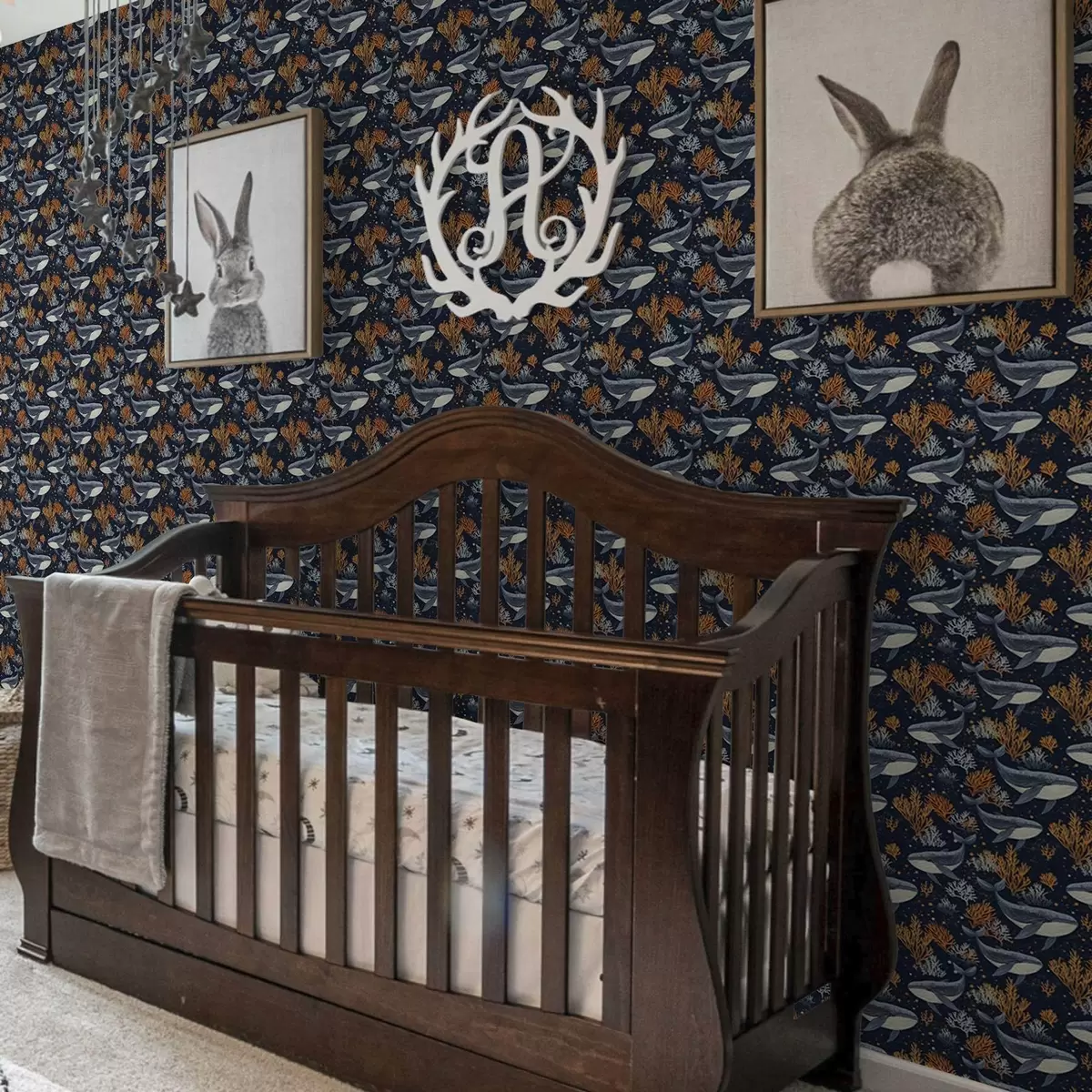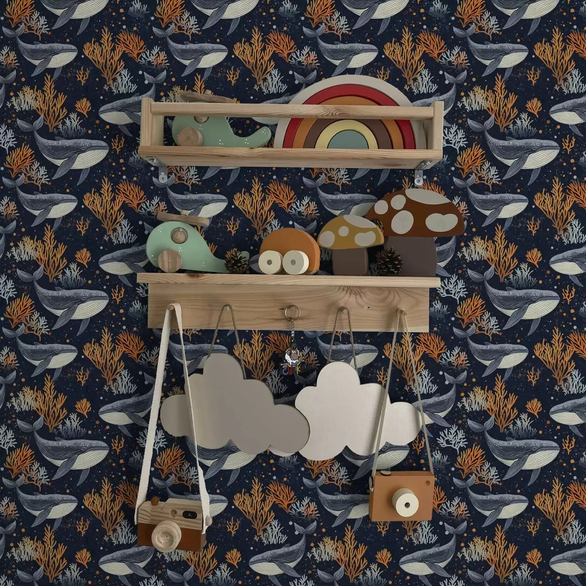 Papel pintado Ballenas marinas y corales sobre fondo oscuro Nr. a00116