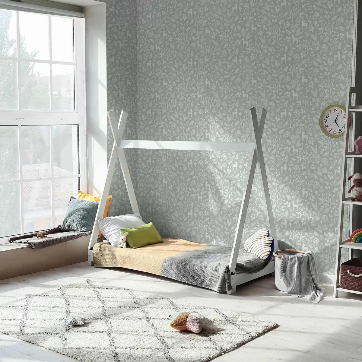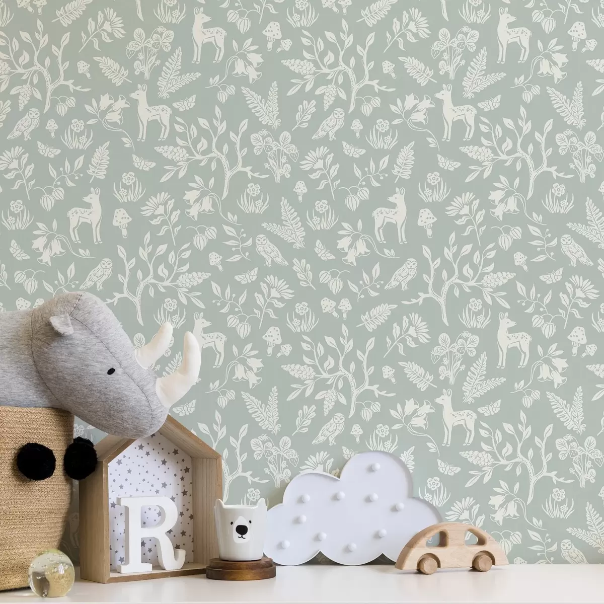 Papel pintado Animales y plantas escandinavos sobre fondo menta Nr. a00149