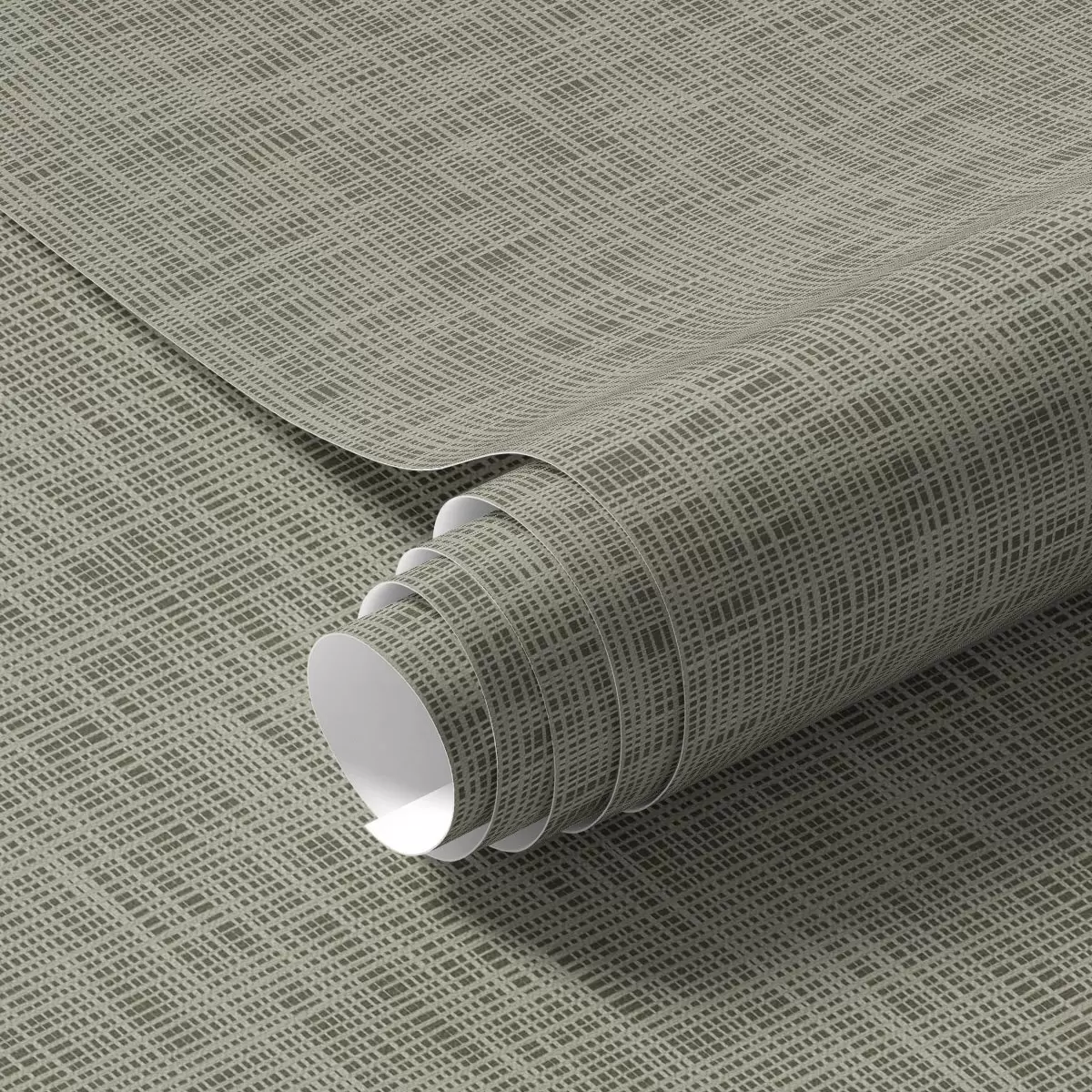 Papel pintado Textura de tejido gris verdoso, motivo de rejilla de lino Nr. a00235