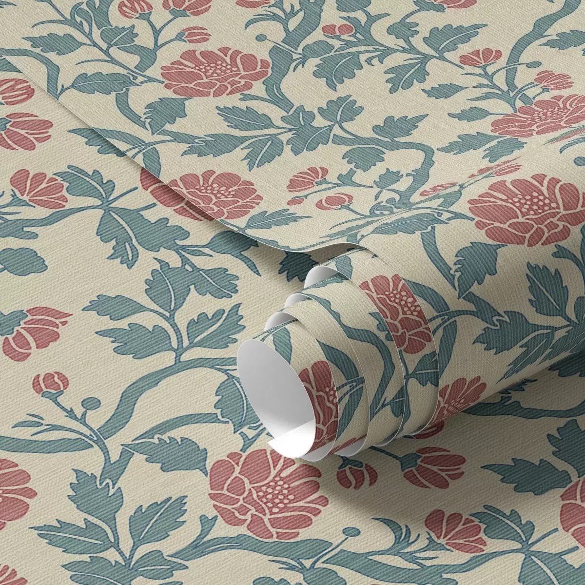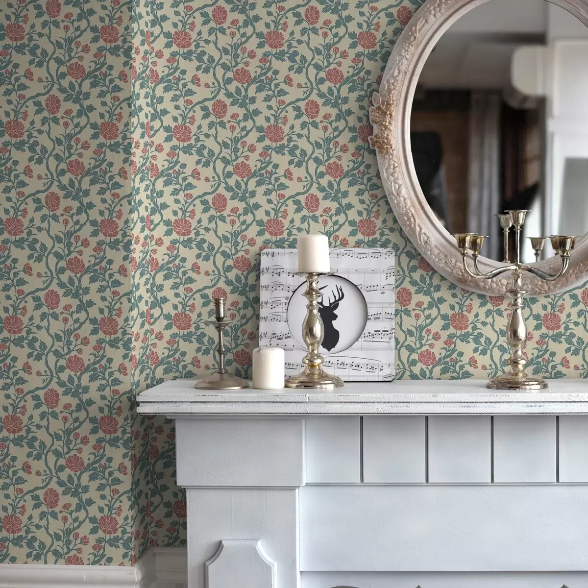 Papel pintado Motivo retro con flores en rojo y verde Nr. a00250