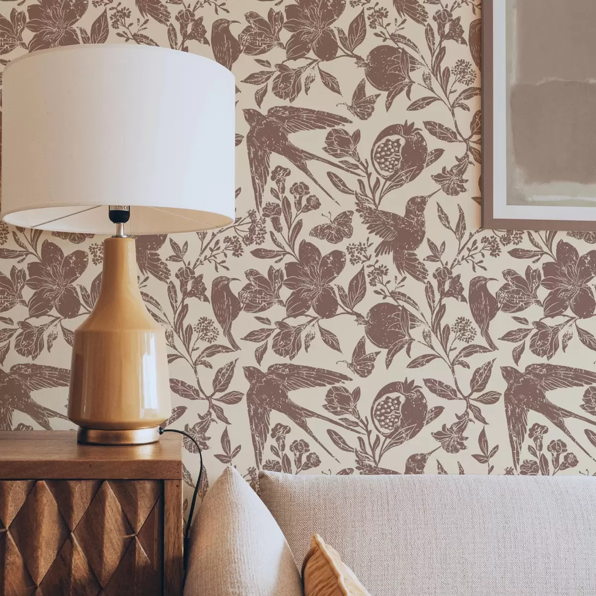 Papel pintado Pájaros, granadas y flores en estilo vintage Nr. a00263
