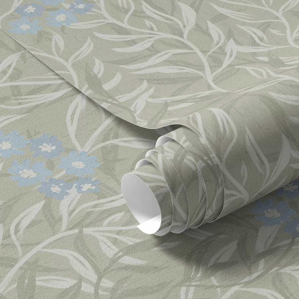 Papel pintado Fondo verde con ramas blancas y flores azules Nr. a00268v1