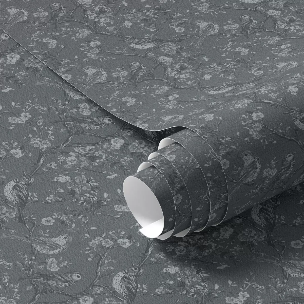 Papel pintado Estampado oscuro con pájaros y flores, estilo clásico Nr. a00281