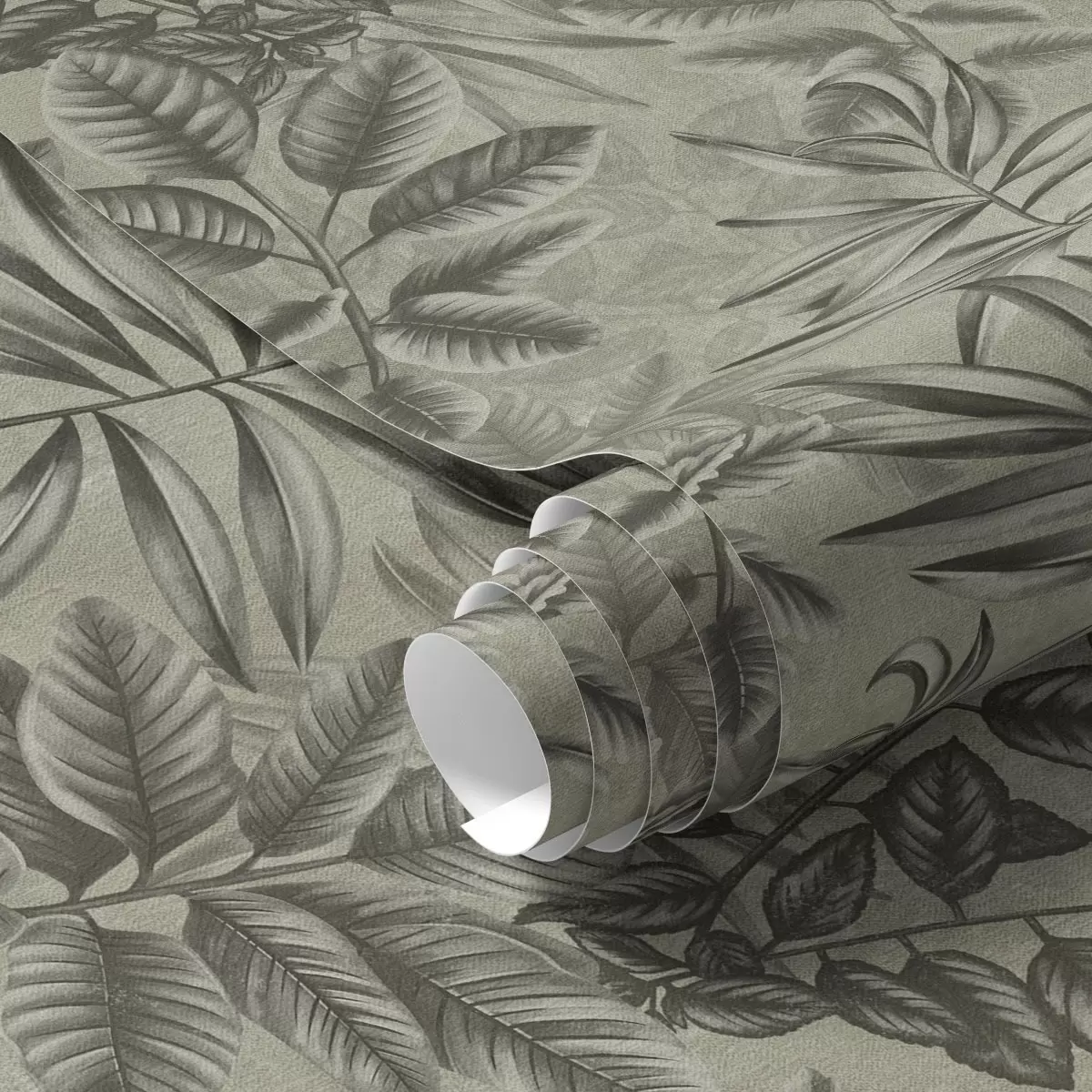 Papel pintado Hojas tropicales grises de diversas formas sobre fondo vintage Nr. a00297