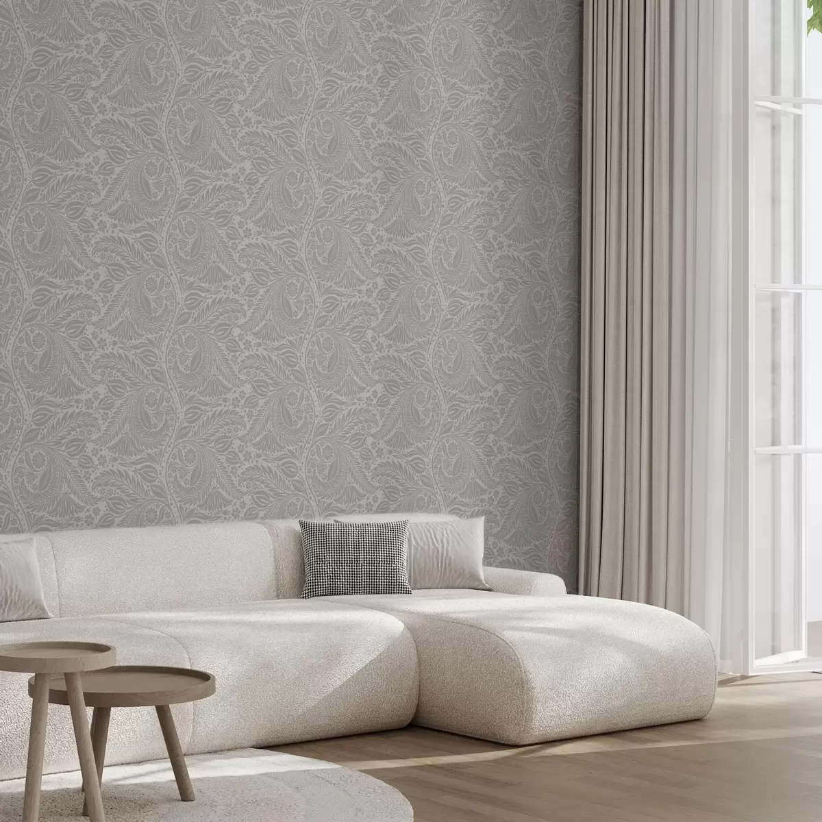 Papel pintado Estilización folclórica gris con hojas y flores Nr. a00301
