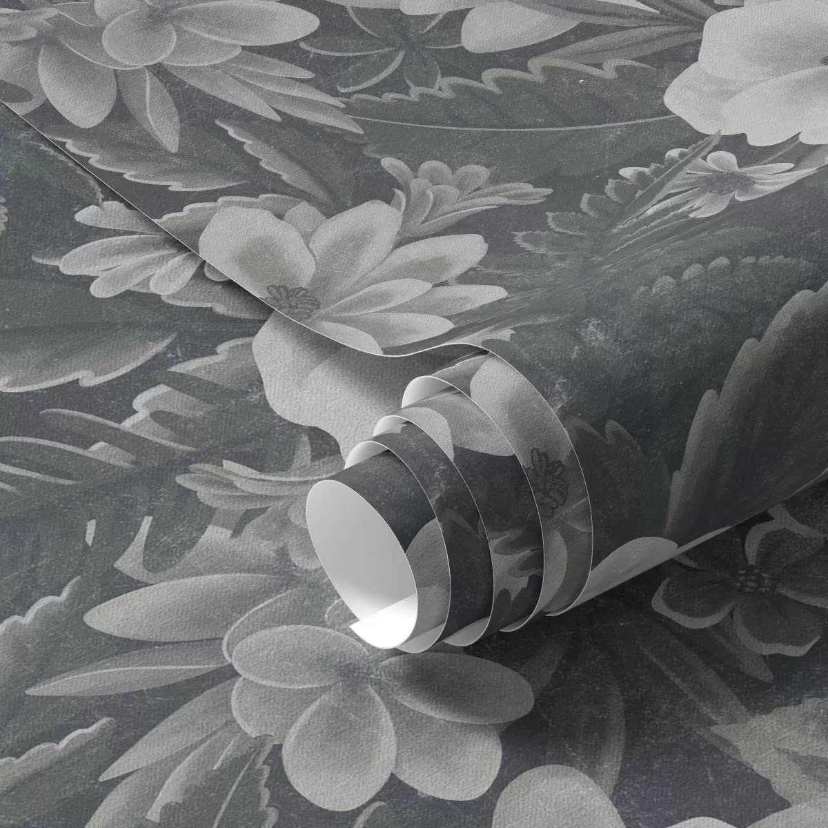Papel pintado Estampado floral gris y blanco con efecto retro Nr. a00307