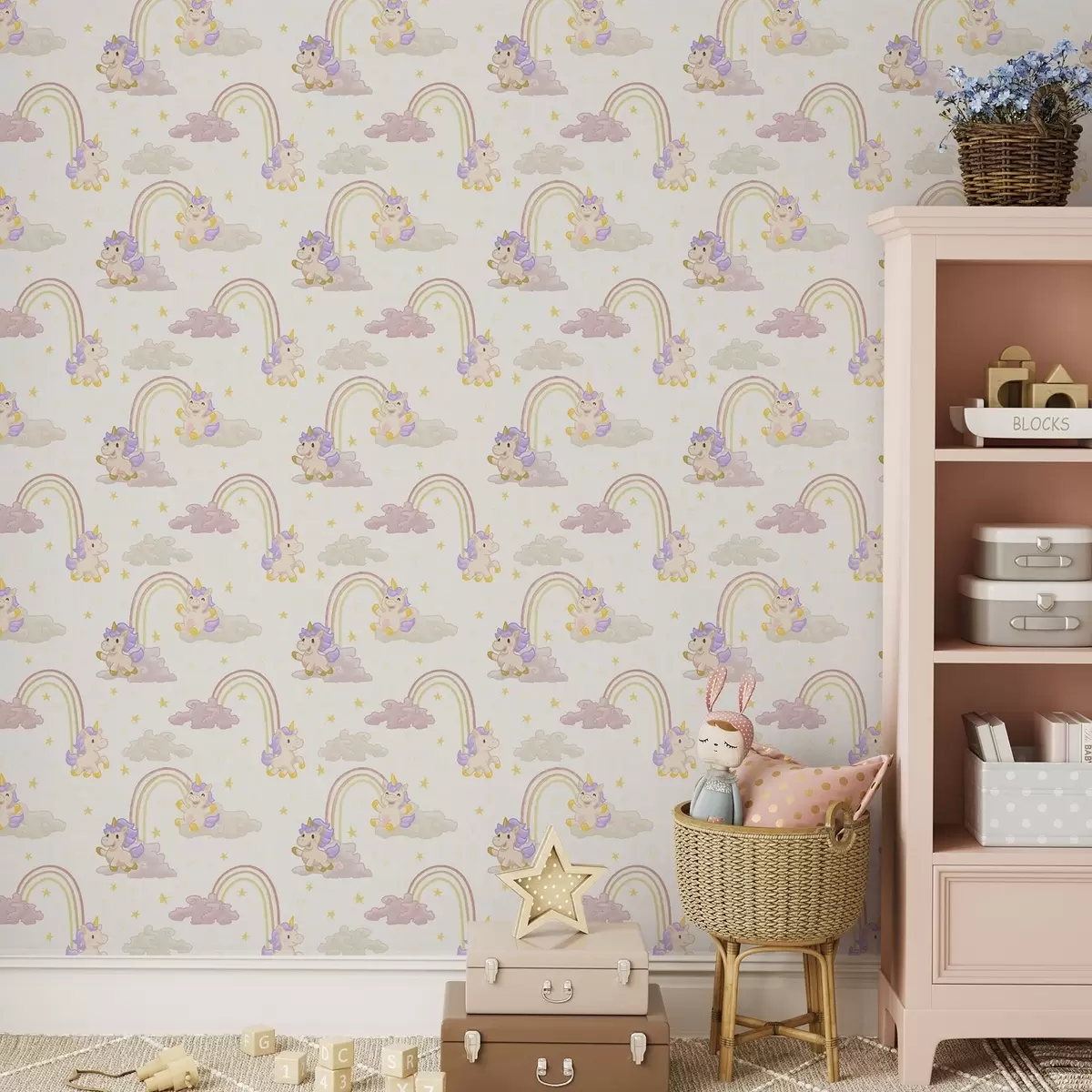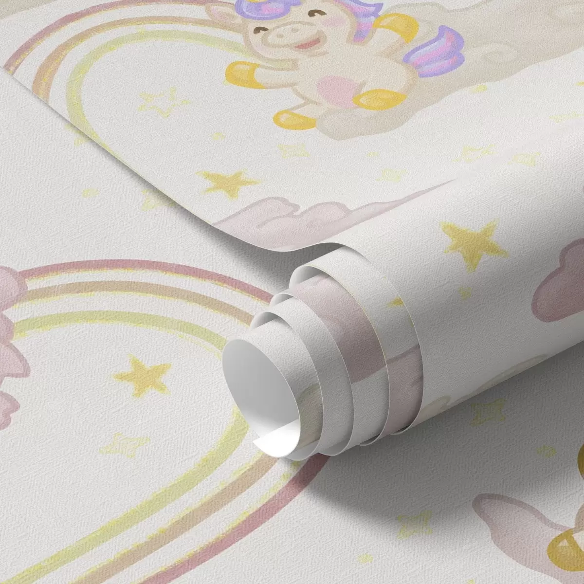 Papel pintado Bonito unicornio con arco iris y estrellas Nr. a00339