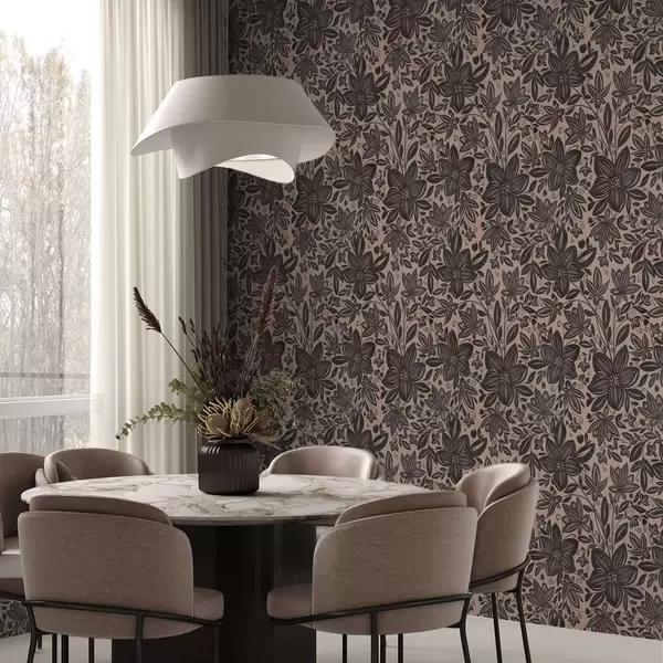 Papel pintado Estampado floral étnico negro y rosa y estampado floral étnico rosa Nr. a00351