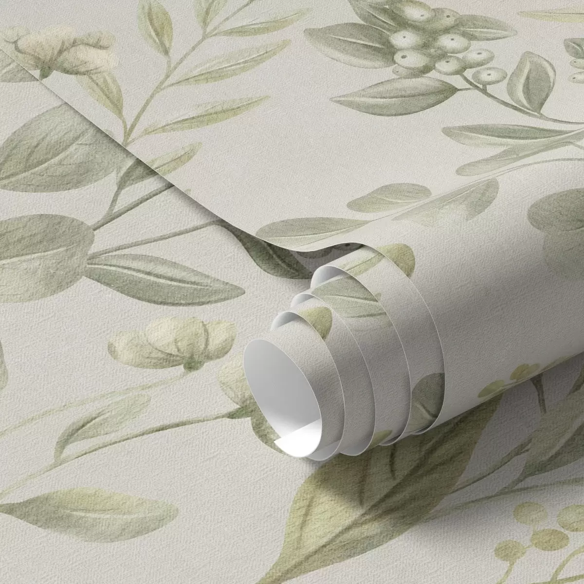 Papel pintado Eucalipto verde pálido en acuarela Eucalipto verde en acuarela con motivo botánico Nr. a00449