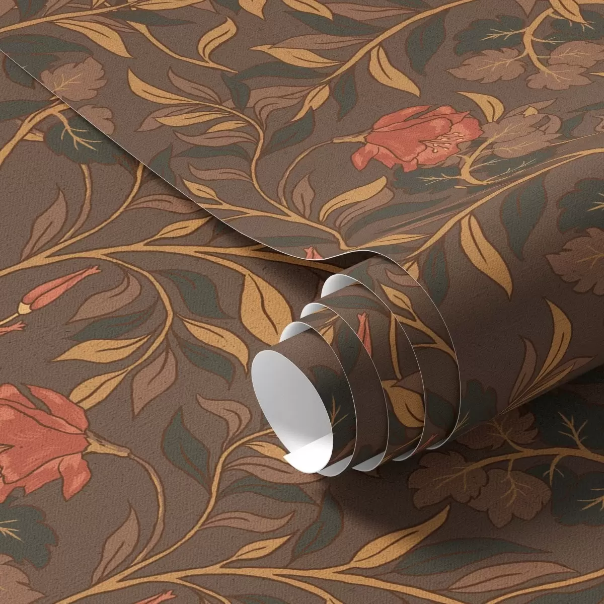 Papel pintado Ramas de terracota en flor sobre fondo marrón Nr. a00460
