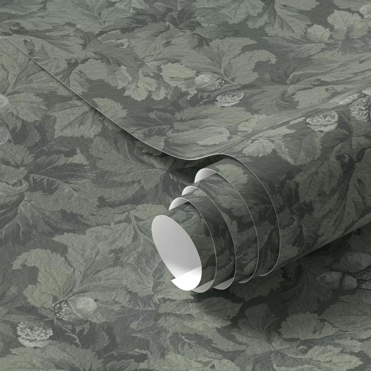 Papel pintado Textura oscura de hojas con bellotas en verde intenso Nr. a00461