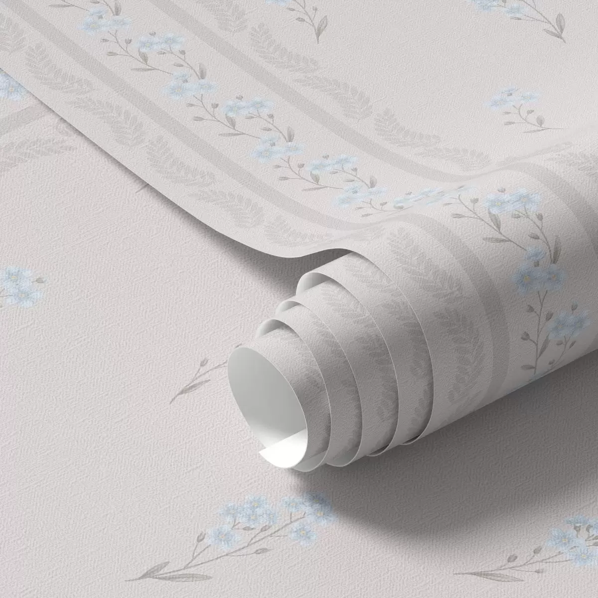 Papel pintado Fondo rosa con delicadas flores azules y cenefa Nr. a00484