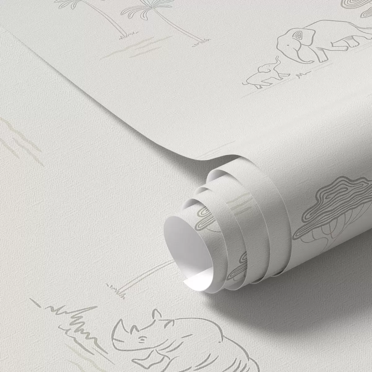 Papel pintado Safari minimalista: elefantes, rinocerontes, leopardos y palmeras Nr. a00492