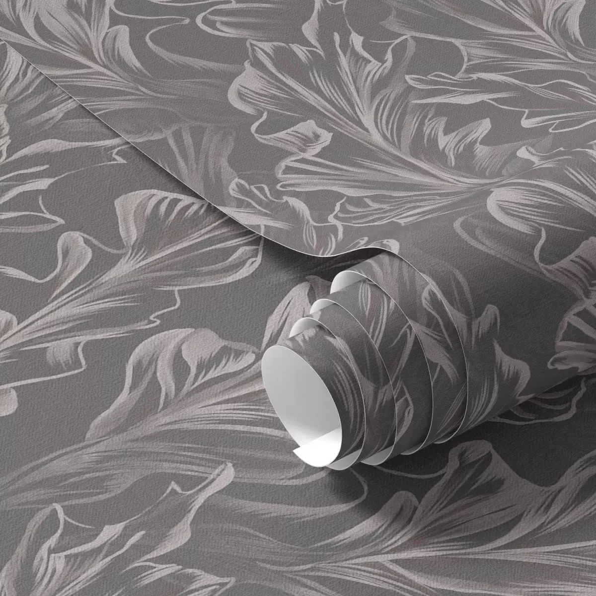 Papel pintado Ondulaciones de hojas fluidas sobre fondo grafito, alto contraste Nr. a00495v1