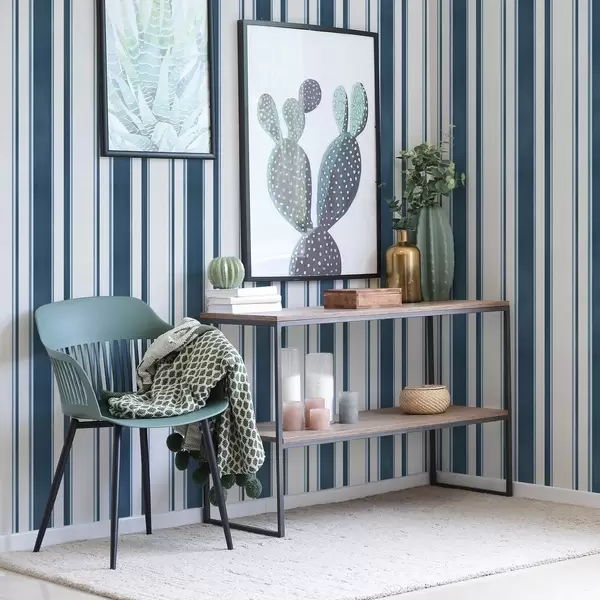 Papel pintado Combinación de rayas turquesas sobre fondo blanco con ritmo Nr. a00527