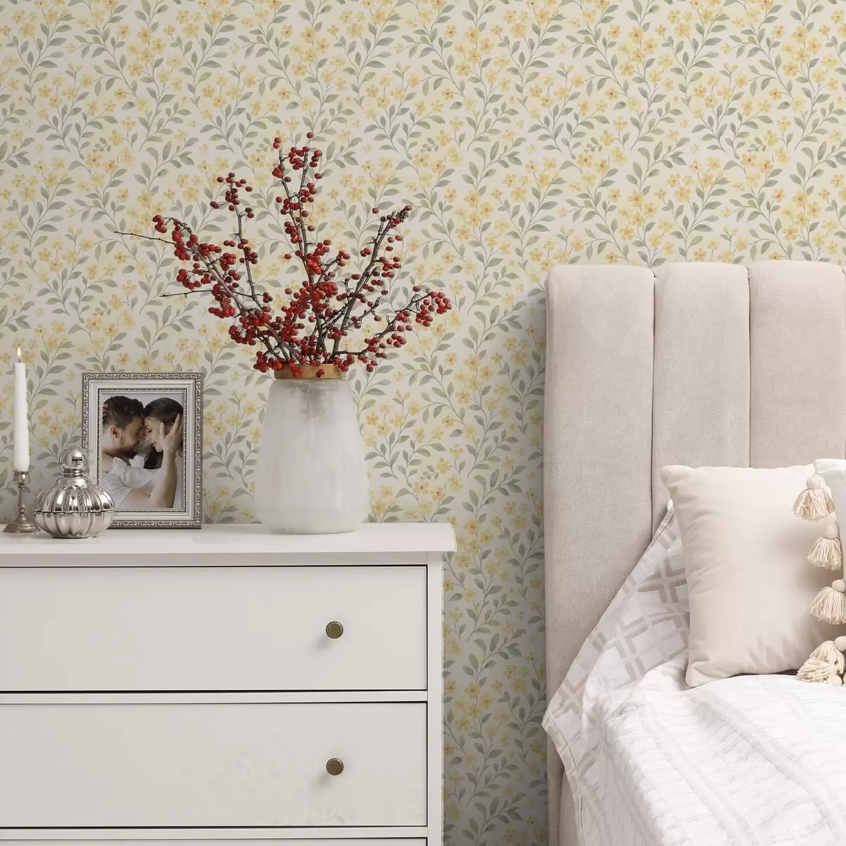 Papel pintado Flores amarillas pintadas con acuarela sobre un fondo claro Nr. a00570