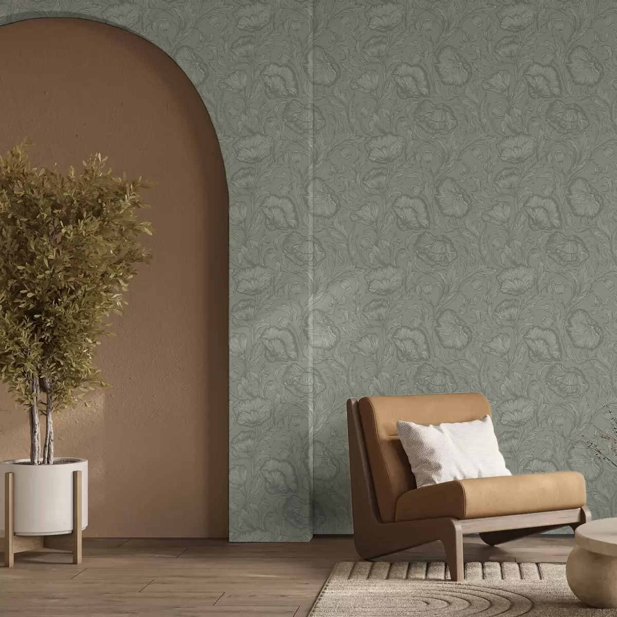 Papel pintado Amapolas en línea sobre un fondo gris verdoso Nr. a00572v1