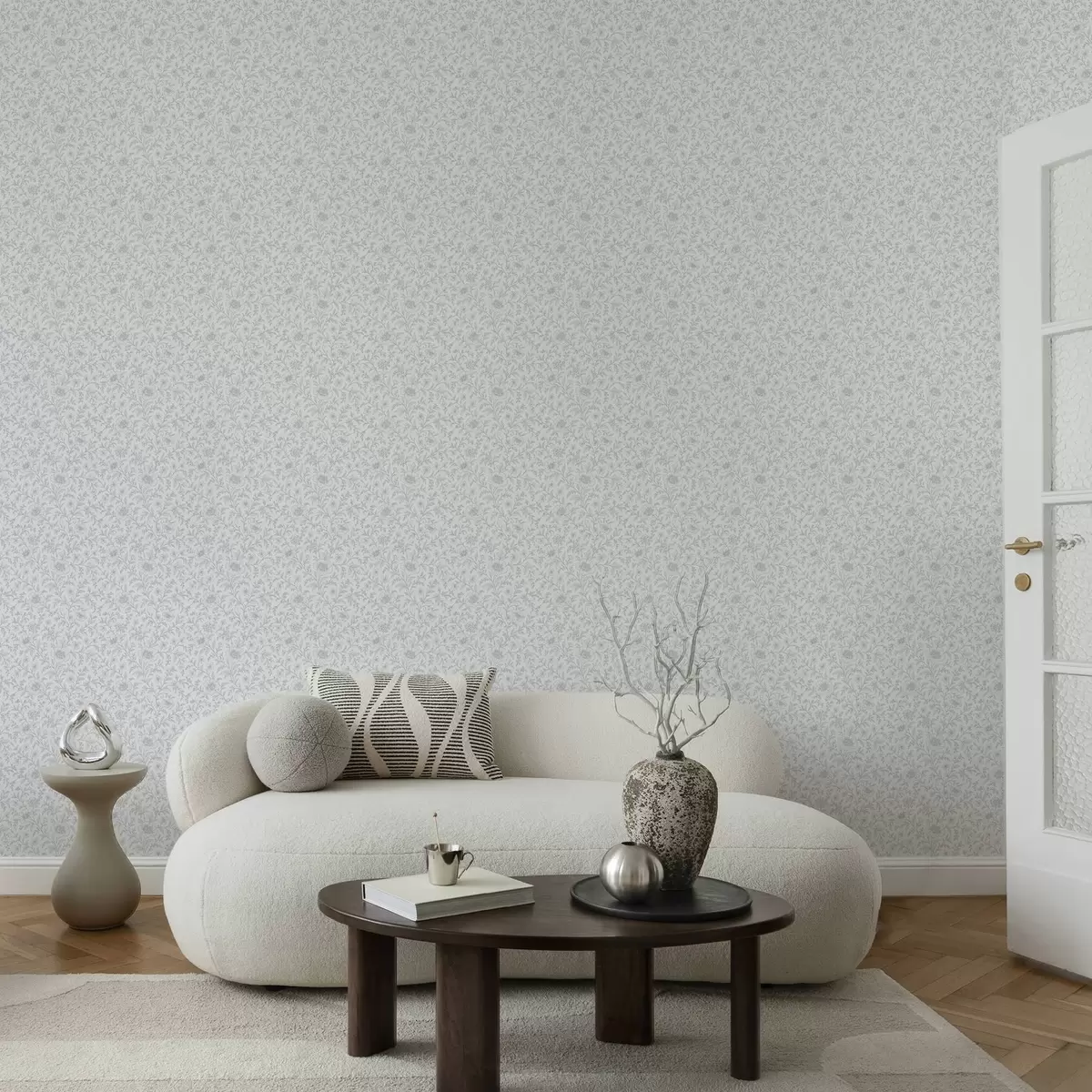 Papel pintado Delicadas flores dibujadas con trazos finos sobre un fondo blanco roto Nr. a00576