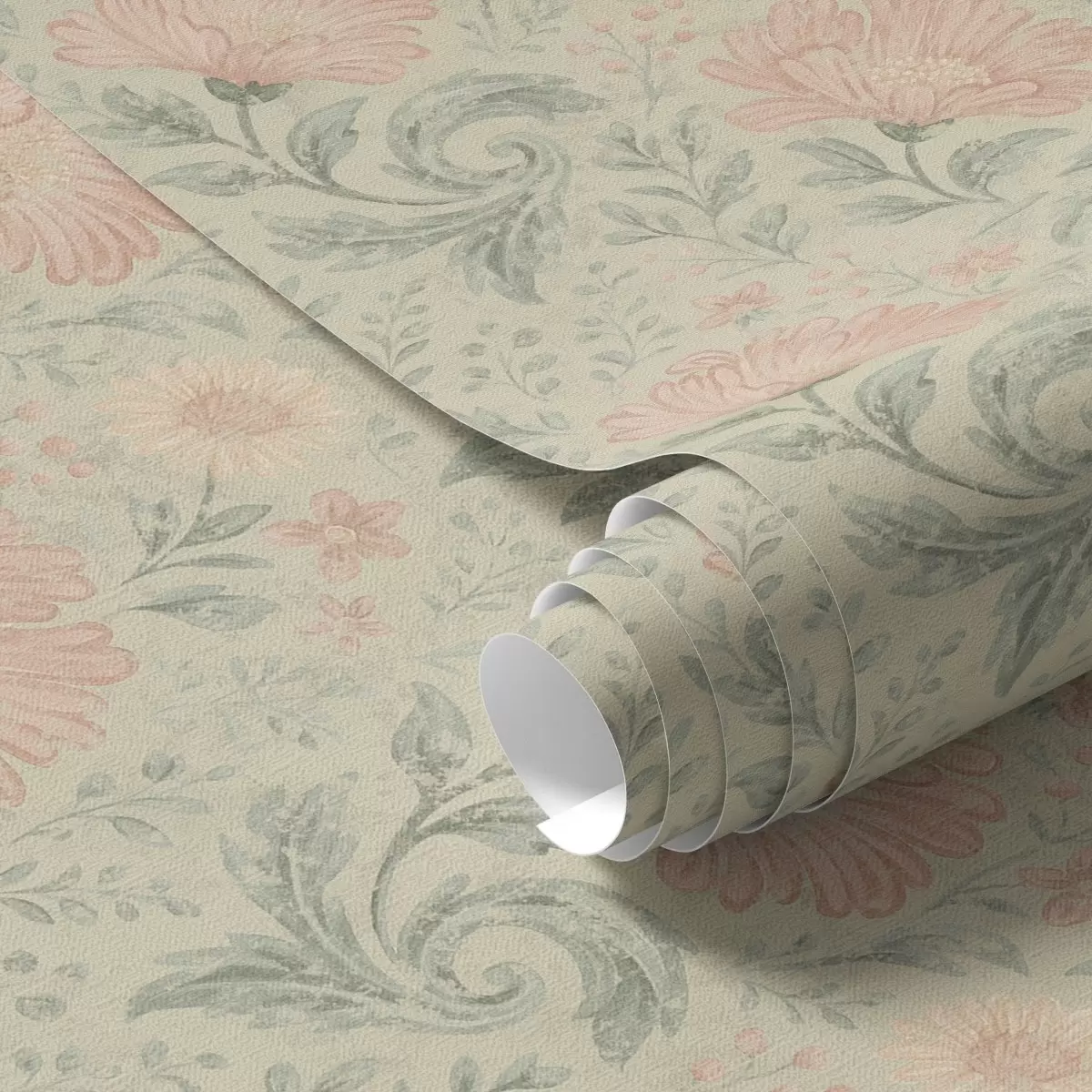 Papel pintado Flores grandes de melocotonero vintage con hojas de salvia Nr. a00580