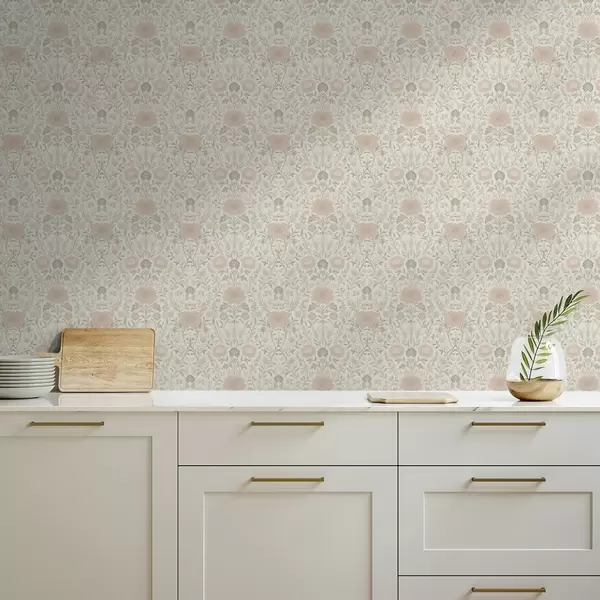 Papel pintado Estilo Morris: peonías y hierbas en suaves tonos beige y verdes Nr. a00581