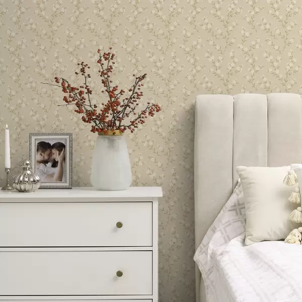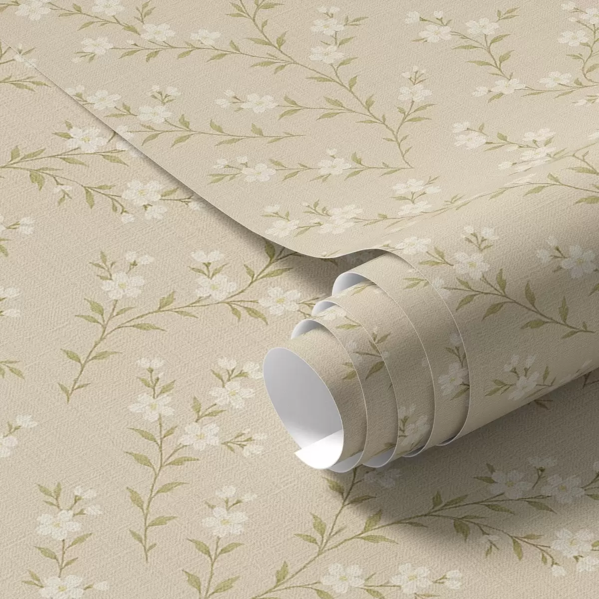 Papel pintado Pequeñas ramitas blancas sobre un fondo de lino beige Nr. a00584