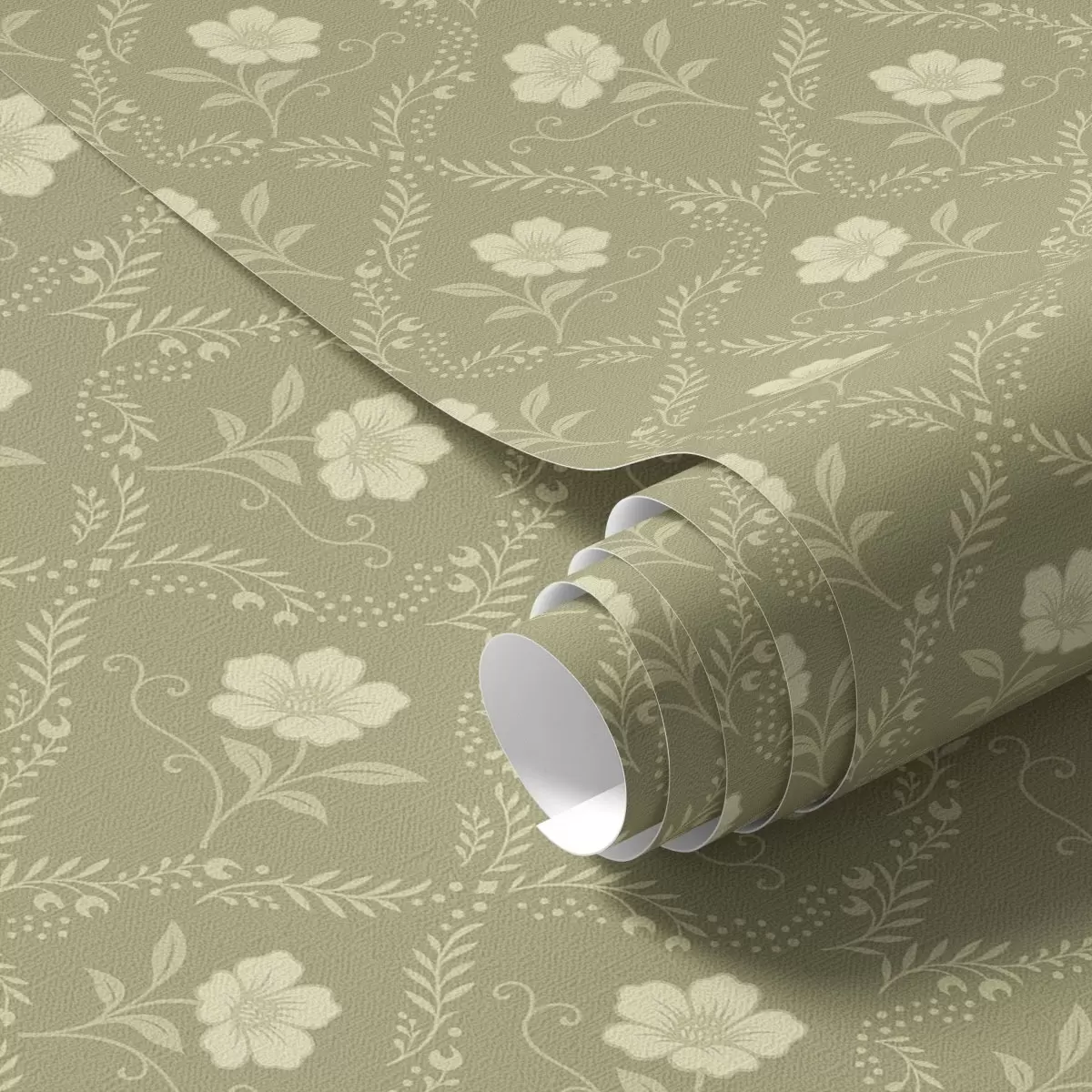 Papel pintado Enrejado de olivo con flores color crema, adorno retro Nr. a00585