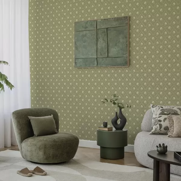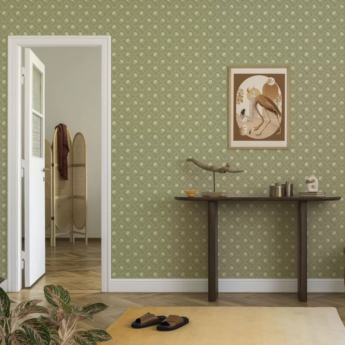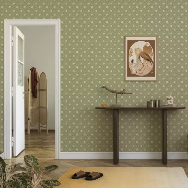Papel pintado Enrejado de olivo con flores color crema, adorno retro Nr. a00585