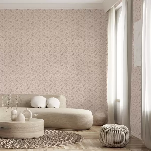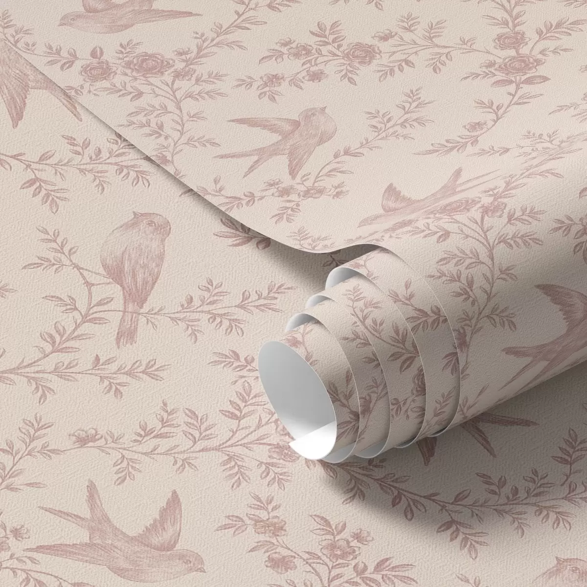 Papel pintado Pájaros y rosas, estampado vintage en rosa empolvado Nr. a00587