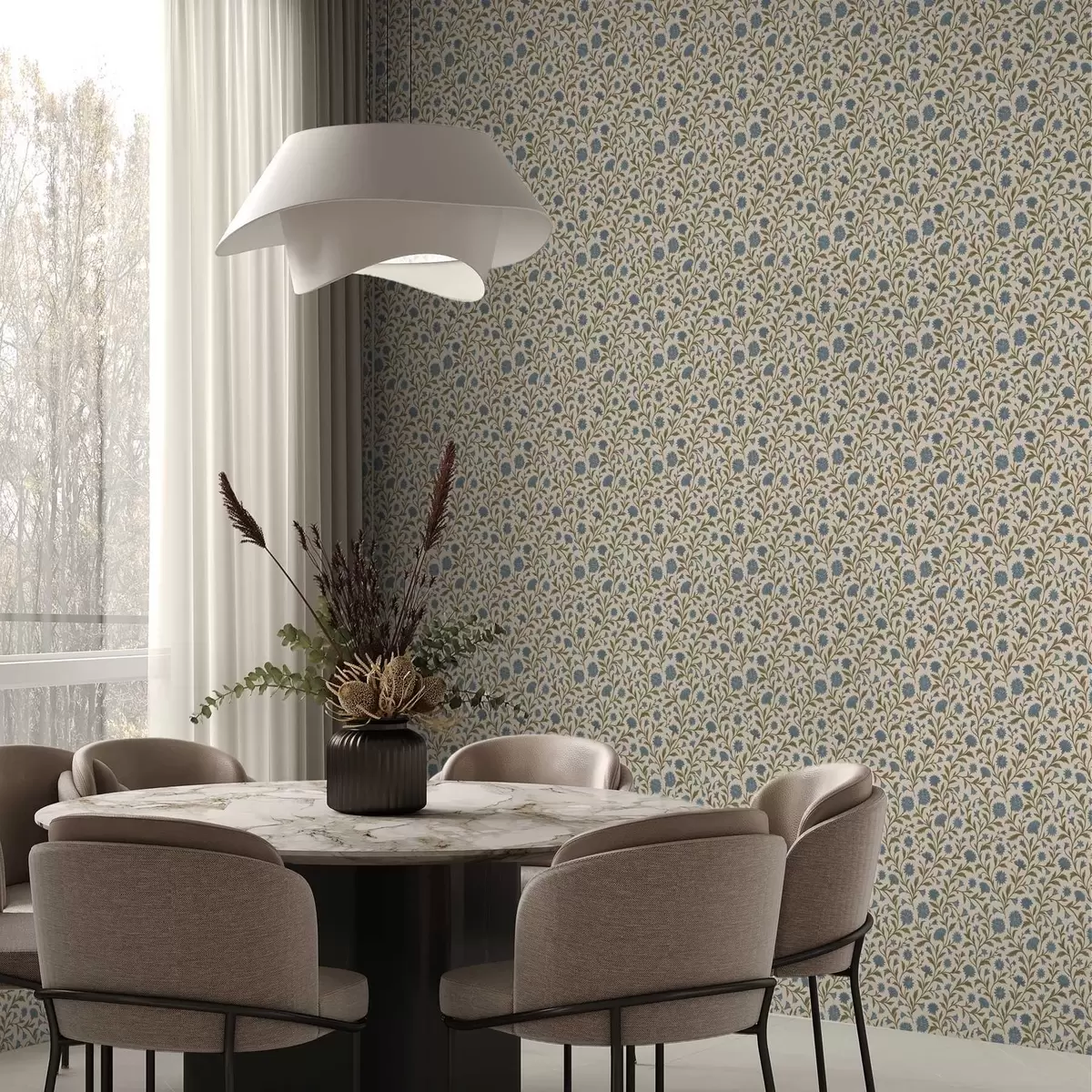 Papel pintado Acianos y brotes sobre fondo beige Nr. a00588
