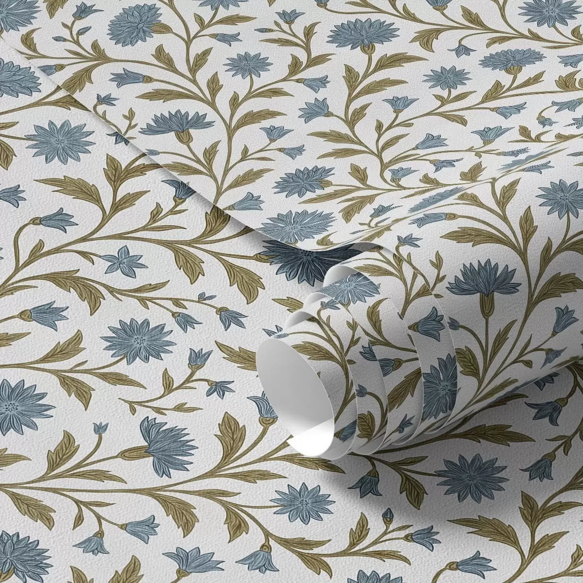 Papel pintado Acianos y brotes sobre fondo blanco Nr. a00588v1