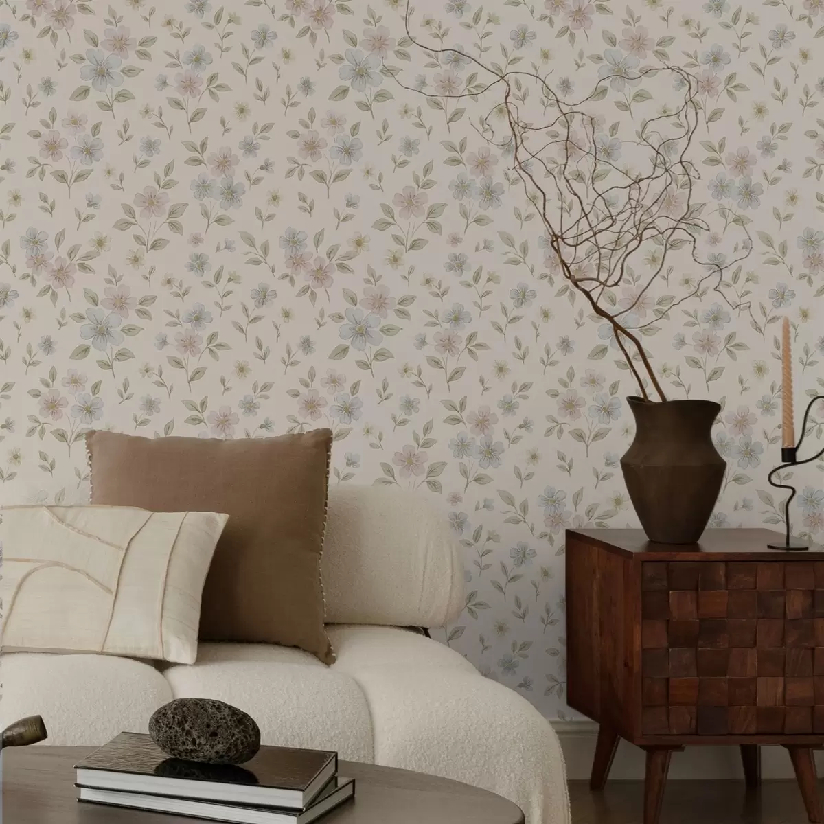Papel pintado Flores de campo en tonos pastel sobre fondo crema Nr. a00596