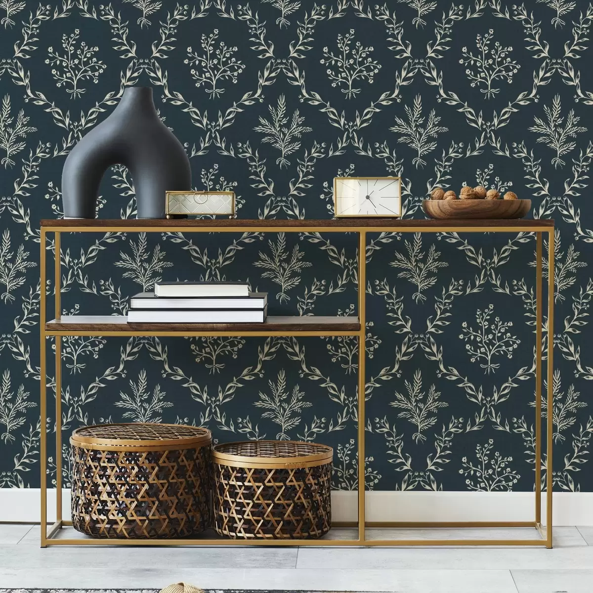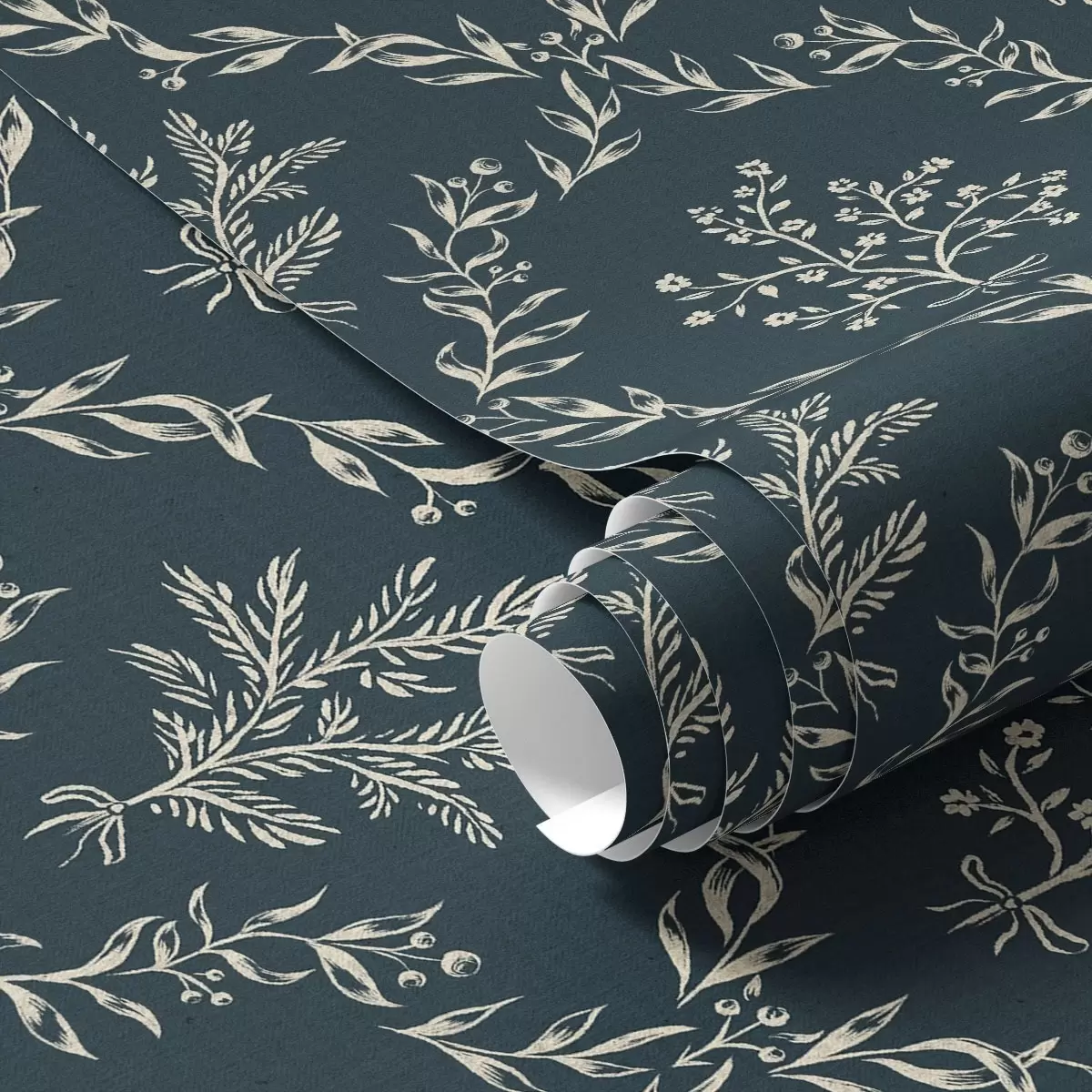 Papel pintado Coronas blancas de hierbas y flores sobre fondo verde azulado oscuro Nr. a00599v2
