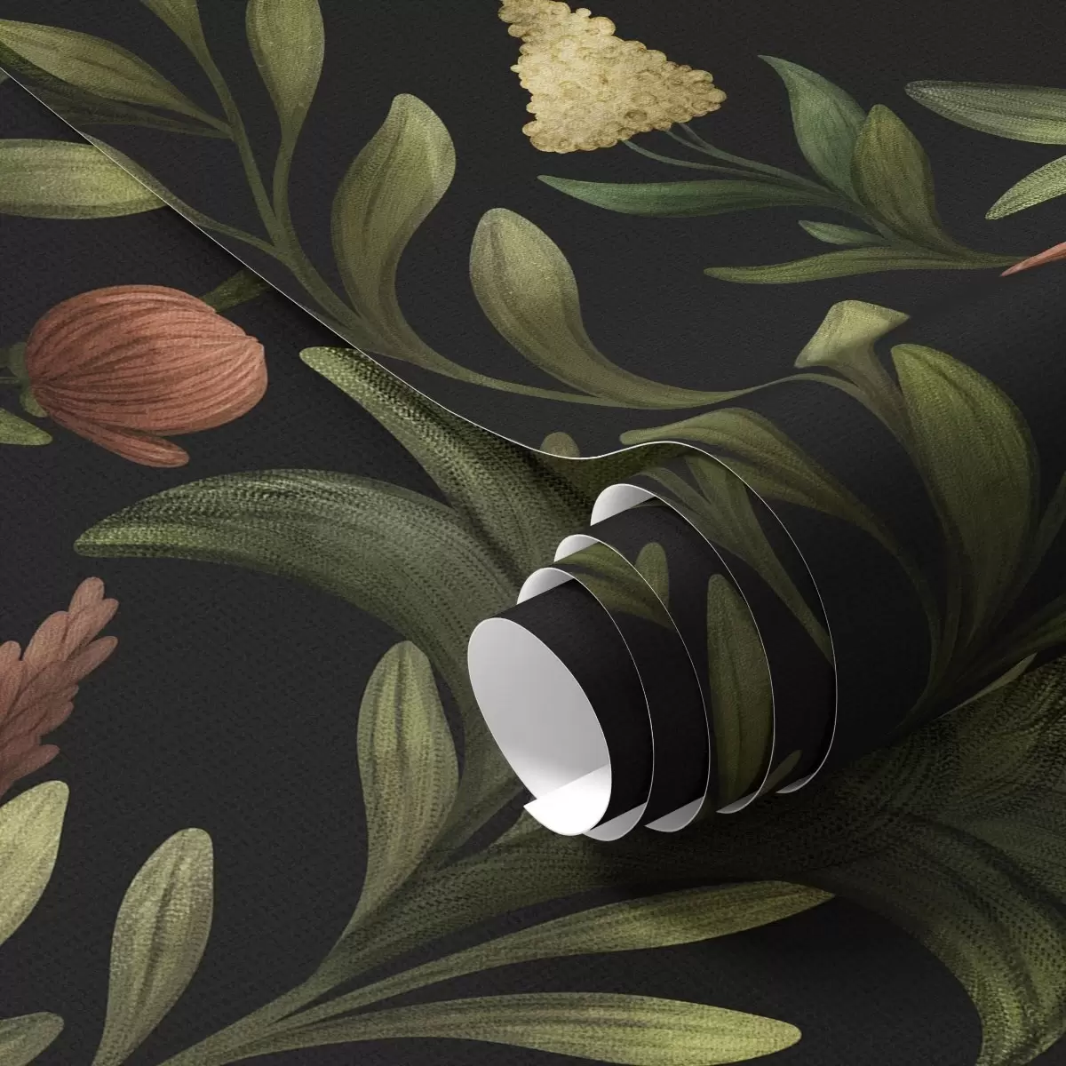 Papel pintado Hierbas altas y flores sobre fondo negro, estampado detallado Nr. a00620