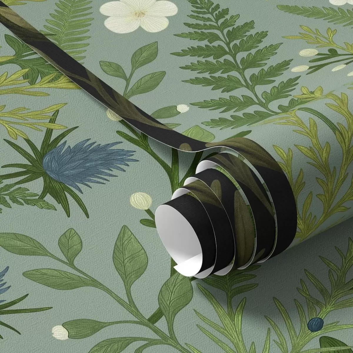 Papel pintado Hierbas silvestres, achicoria y bayas sobre un fondo de menta Nr. a00621v1