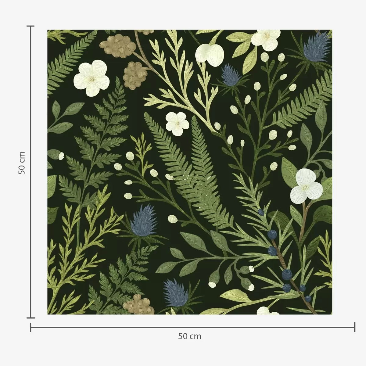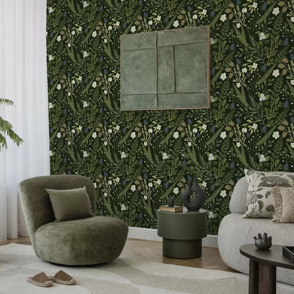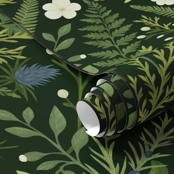 Papel pintado Hierbas y bayas del bosque sobre un fondo verde oscuro Nr. a00621v2