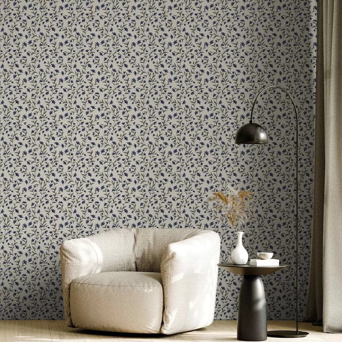 Papel pintado Campanillas y vegetación gris sobre un fondo claro Nr. a00622v1