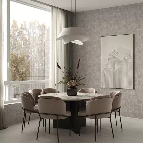 Papel pintado Flores con contorno en crema sobre un fondo marrón grisáceo cálido Nr. a00625v2