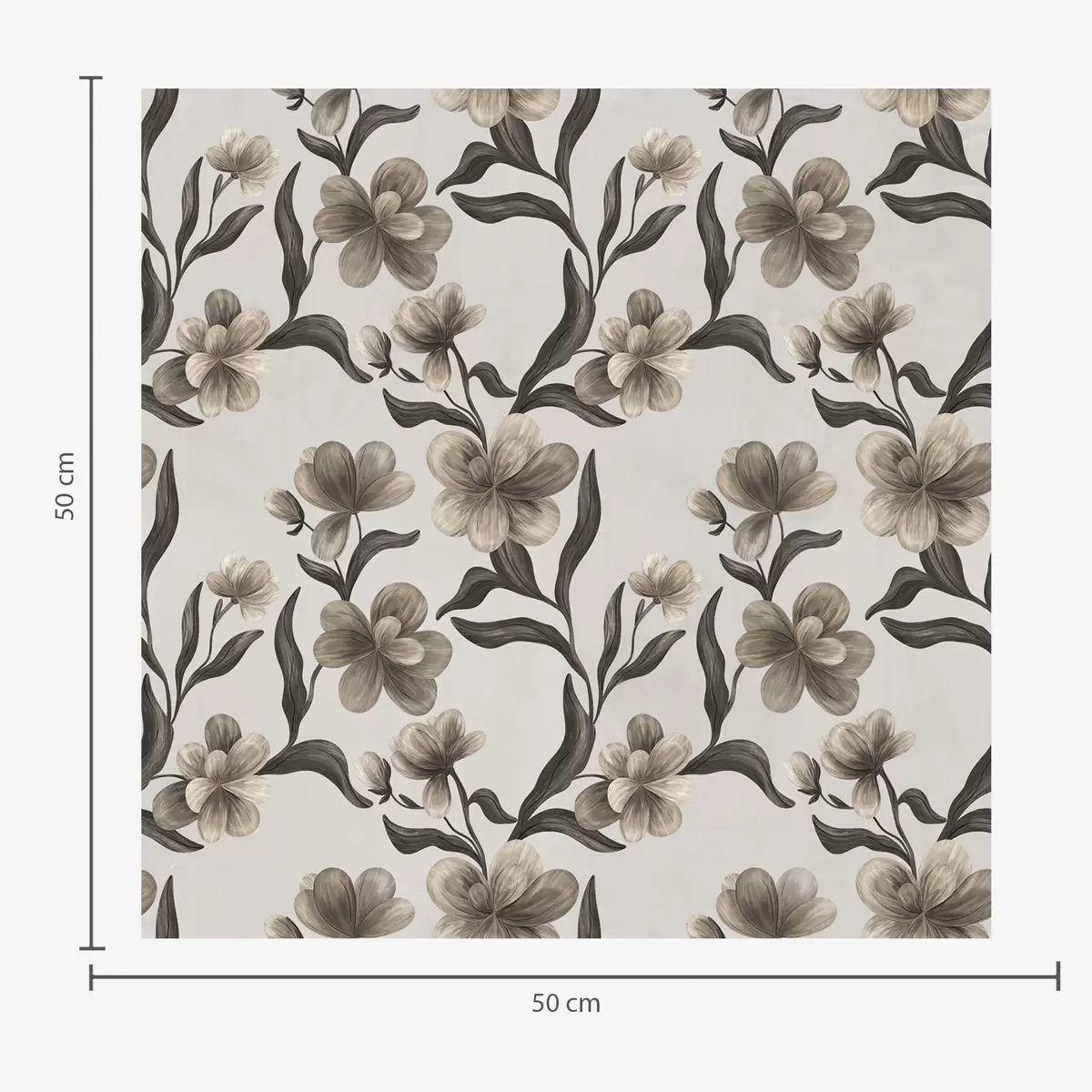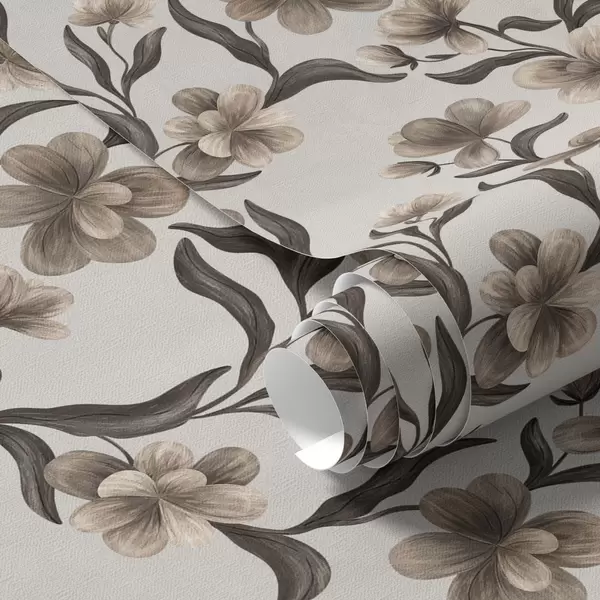 Papel pintado Flores beige y ramas oscuras sobre fondo gris claro Nr. a00626v1