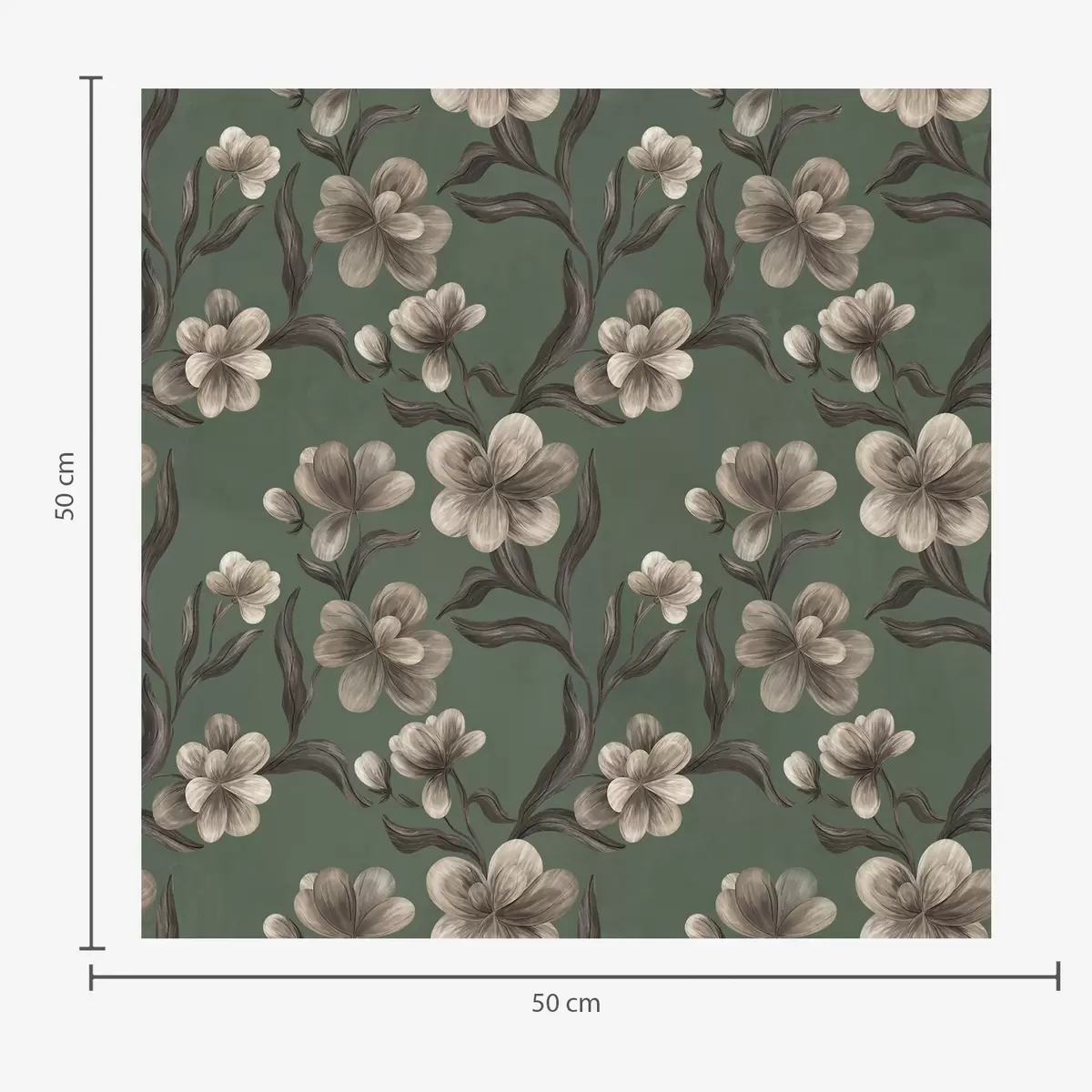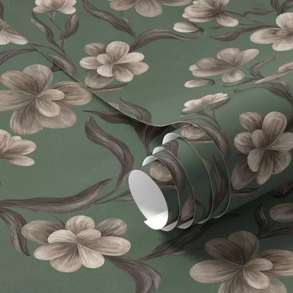 Papel pintado Flores beige sobre un fondo verde intenso Nr. a00626v3