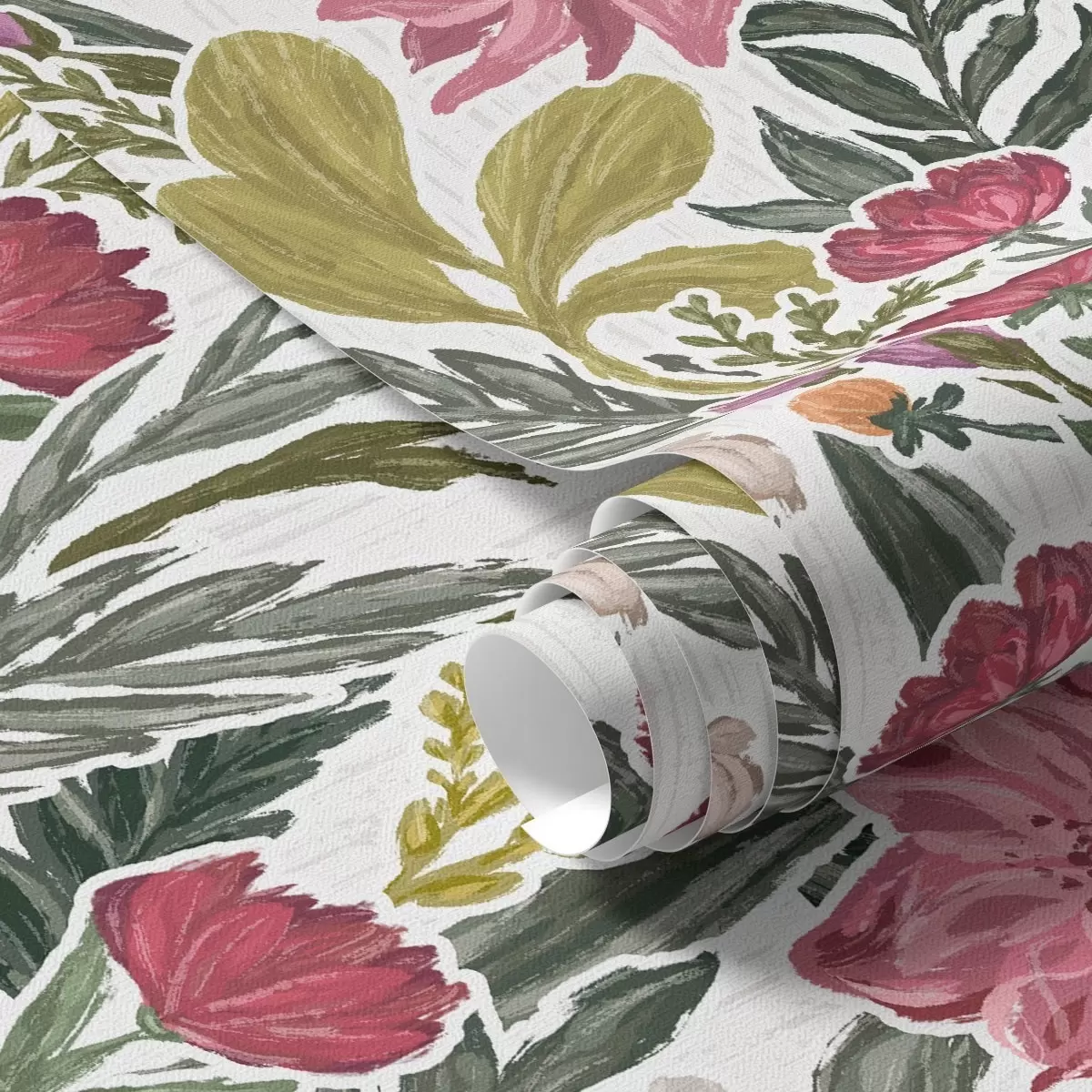 Papel pintado Exuberantes flores rosas y crema sobre fondo blanco, textura impasto Nr. a00629v1