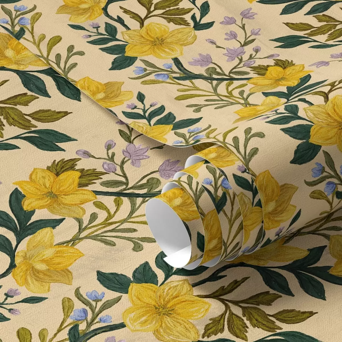 Papel pintado Flores amarillas en guirnaldas verticales sobre fondo crema Nr. a00632