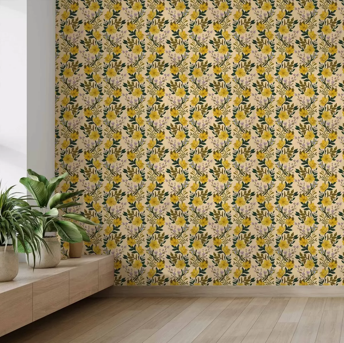 Papel pintado Flores amarillas en guirnaldas verticales sobre fondo crema Nr. a00632