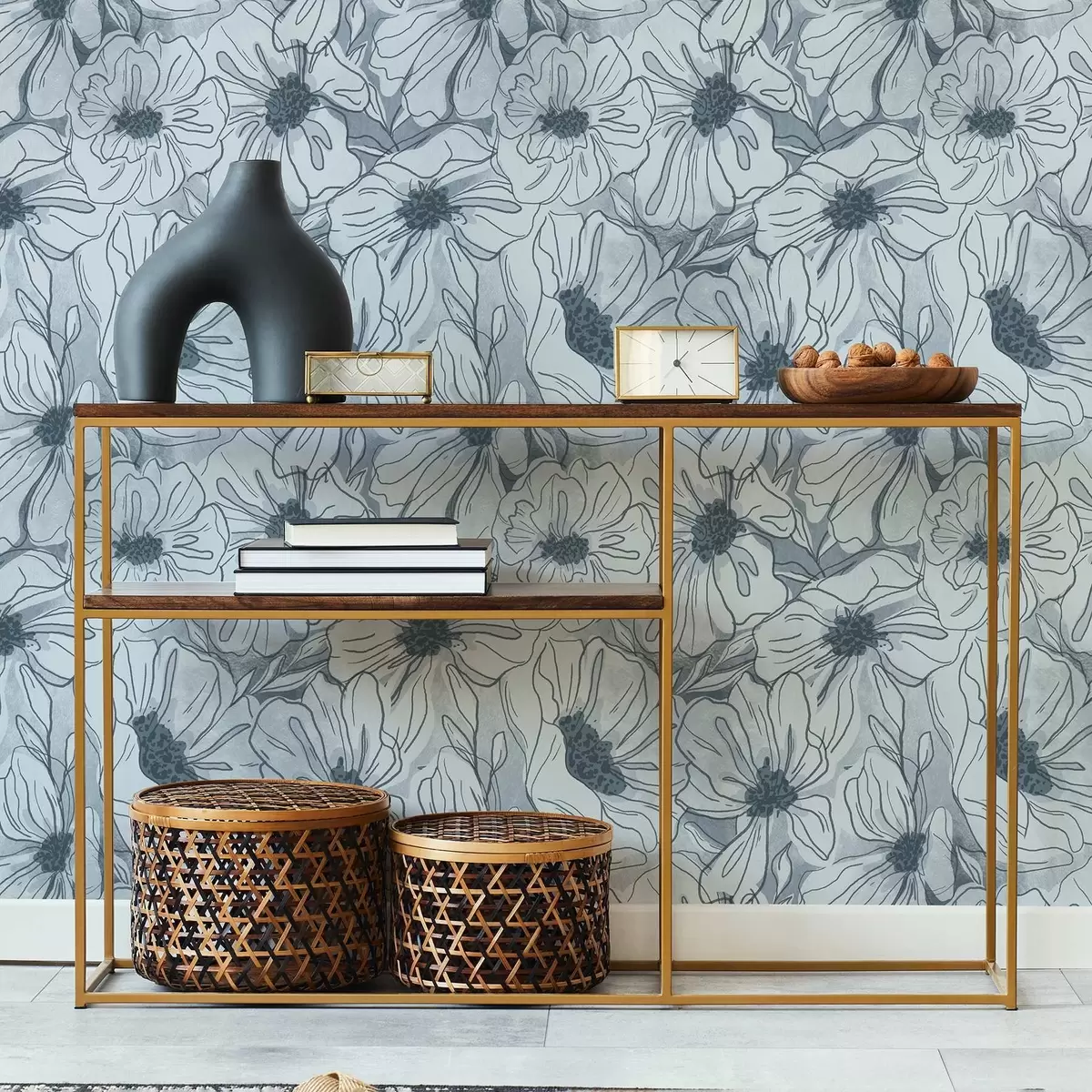 Papel pintado Flores lineales en una fresca paleta de colores gris azulados Nr. a00636v2